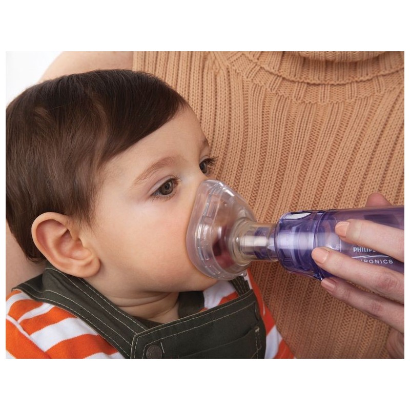 • Elastyczny adapter pewnie utrzymuje inhalator w komorze