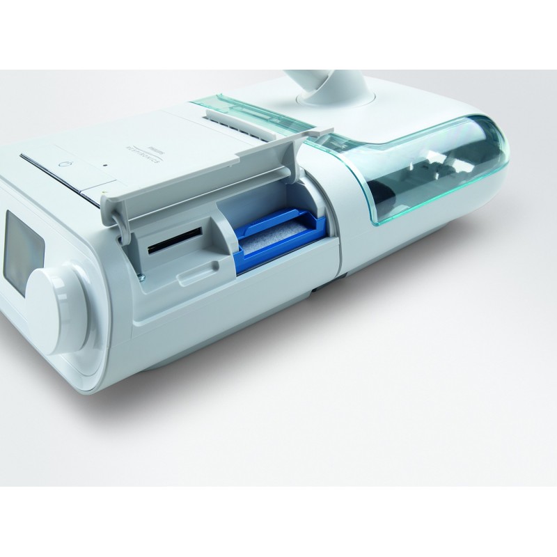 3. Umieścić nowy zespół filtrów w tylnej części urządzenia terapeutycznego. Zamknąć pokrywę filtra.